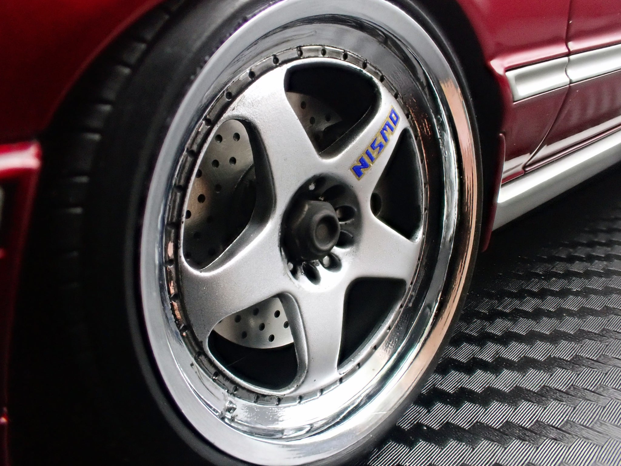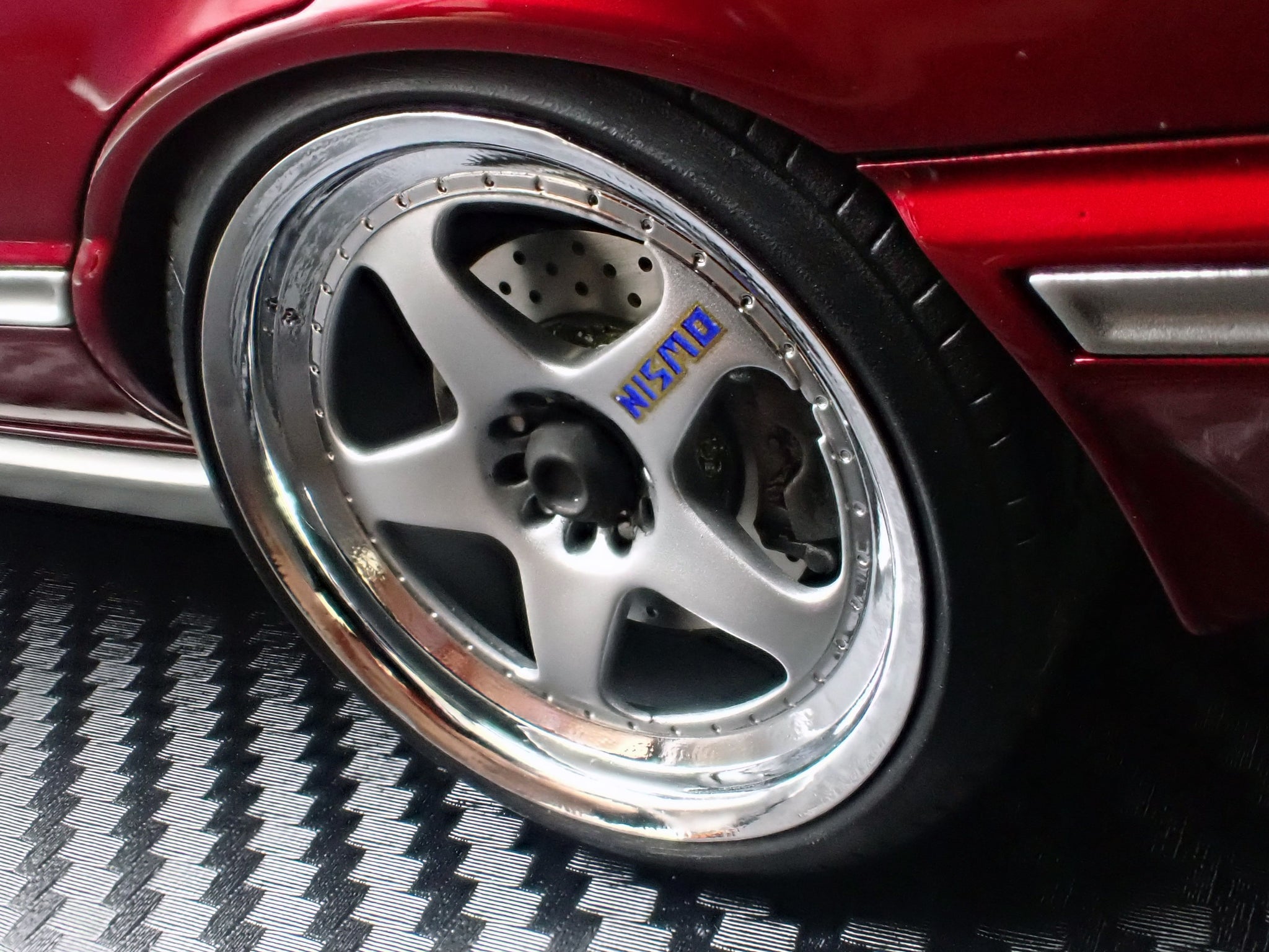 Equipped with NISMO LM GT2-style 18-inch wheels (polished & silver) and lowered stance.
