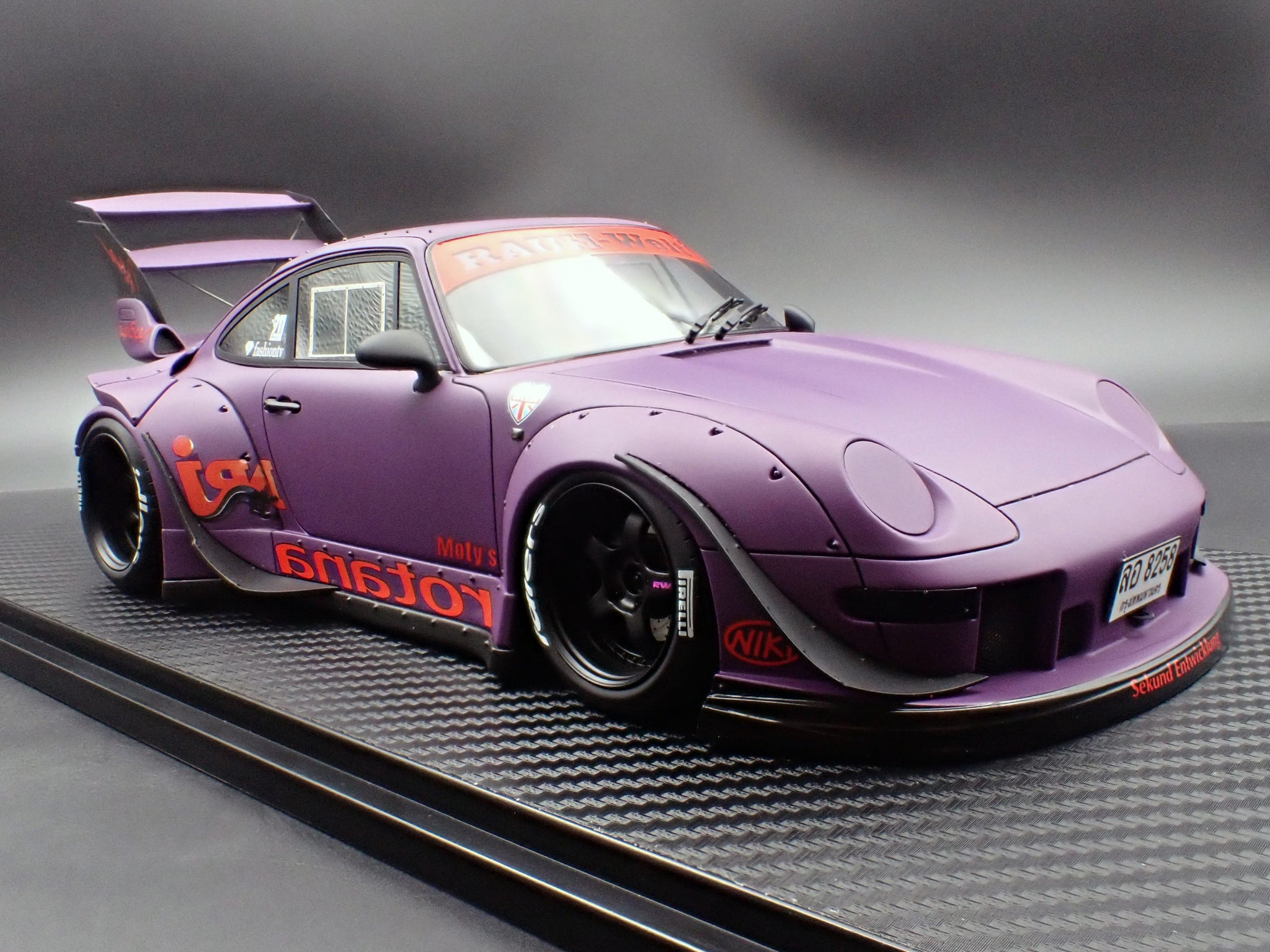 The “RWB 993” faithfully reproduced in 1/18 scale using resin material.
