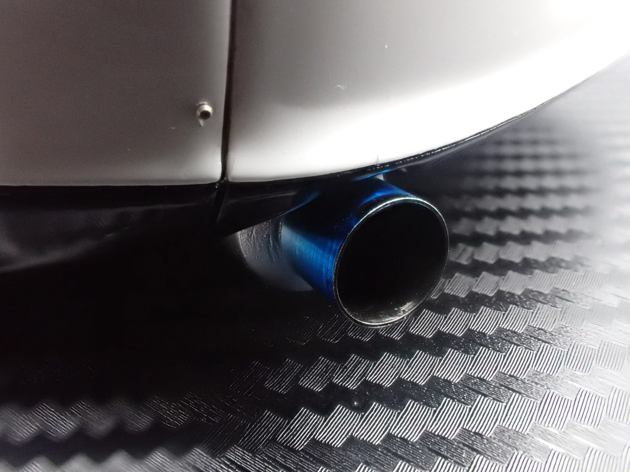 Interior details include a bucket seat, roll bar, dedicated brake calipers, and a custom steering wheel, along with a single-exit muffler to complete the tuned specification.